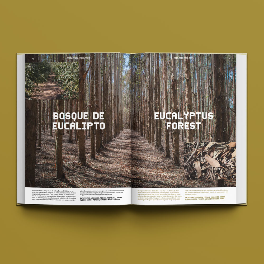Thus, the Forestry Law is revealed as an active text that is part of a trans-scalar assemblage -legal, spatial, environmental and social- that can derive in the construction, symbolic and literal, of other multiple futures. When most of Uruguay's abundant new forests end up being exported abroad as cellulose pulp, how can we imagine Uruguay as a laboratory for fairer and more inclusive wood futures?